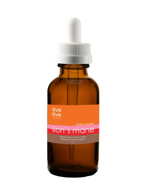 lion's mane mushroom, brain power drops, 1oz, live live & organic